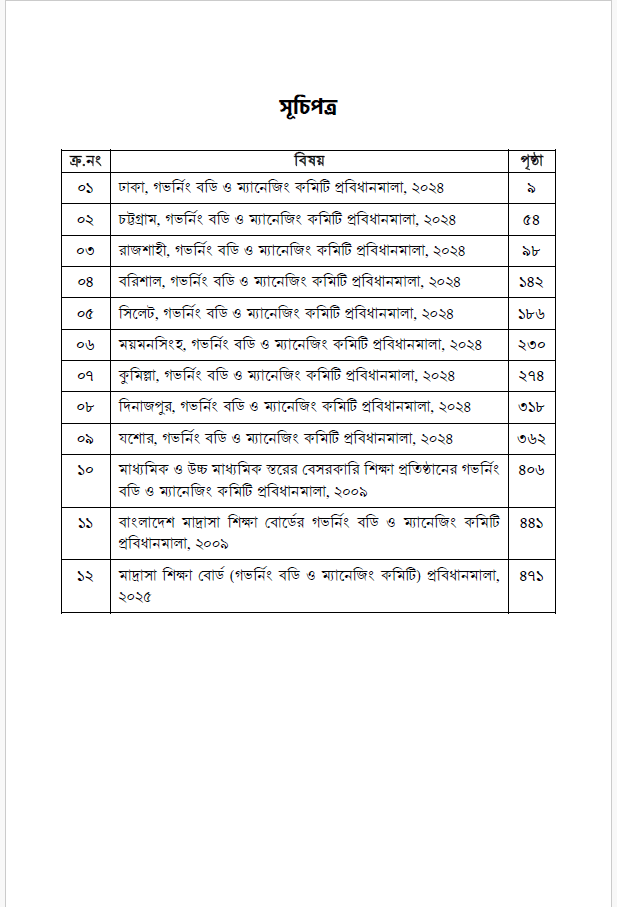 গভর্নিং বডি ও ম্যানেজিং কমিটি প্রবিধানমালা-২০২৫