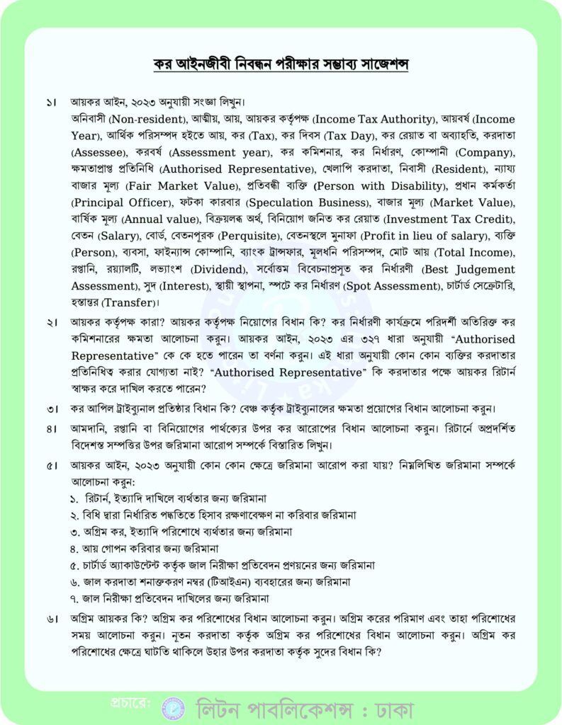 কর আইনজীবী নিবন্ধন পরীক্ষার সম্ভাব্য সাজেশন্স